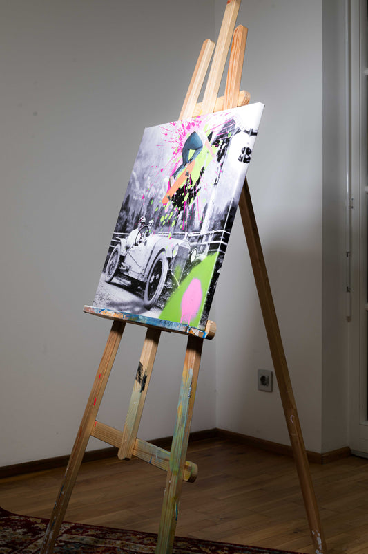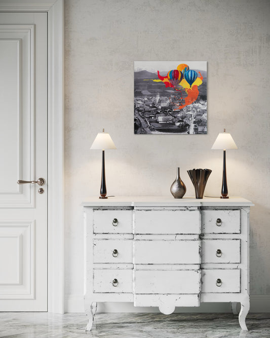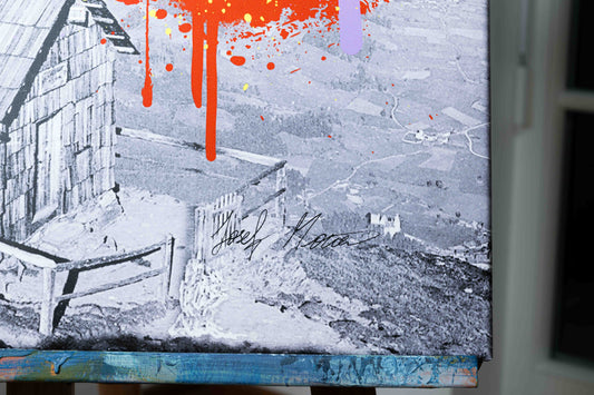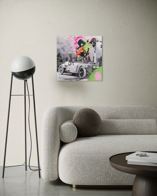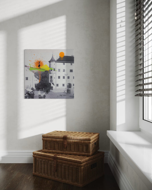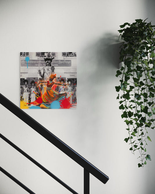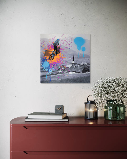 Diese Serie verbindet historische Schwarz-Weiß-Fotografien mit lebendigen, modernen Farbspritzern und handgemalten Elementen. Die Werke schlagen eine Brücke zwischen Vergangenheit und Gegenwart, indem sie den traditionellen Kontext mit dynamischen und farbenfrohen Akzenten kontrastieren. Jedes Bild erzählt eine eigene Geschichte, die historische Szenen mit zeitgenössischer Energie und Abenteuerlust verbindet.